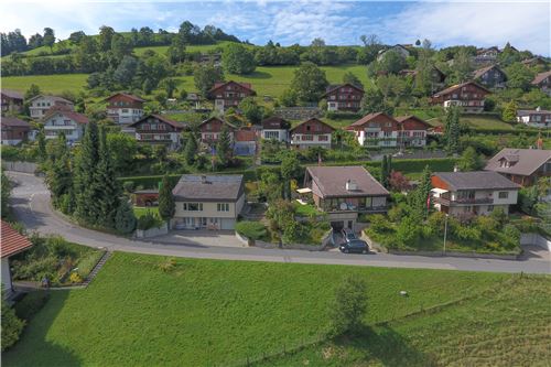 Eine Garage mit vier Einstellplätzen ist dem Gebäude vorgelagert. Weitere offene Auto- und Motorrad-Parkplätze entlang der Strasse sowie gedeckte Veloabstellplätze sind vorhanden.